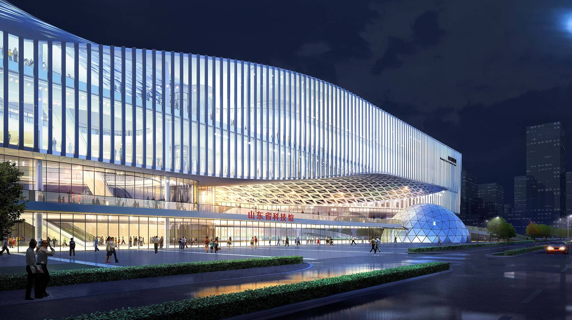 山東省科技館位于泉城廣場(chǎng)最東側(cè),是在原濟(jì)南劇院和美術(shù)總廠(chǎng)已有建筑的基礎(chǔ)上擴(kuò)建而成的。最高位五層,新建部分高度達(dá)22.95米,擴(kuò)建后的總面積近2萬(wàn)平方米。一直四層為各類(lèi)別的展廳,四層頂面上設(shè)有天象儀和大型電子屏幕。山東省科技館是一座普及科普教育、進(jìn)行科技宣傳的大型現(xiàn)代化科技展館。