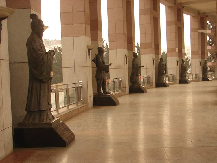 文化長(zhǎng)廊位于泉城廣場(chǎng)東側(cè),是泉城廣場(chǎng)東部重要標(biāo)志性建筑物,也是登高欣賞廣場(chǎng)全貌的最佳場(chǎng)所。文化長(zhǎng)廊呈圓弧狀,南北長(zhǎng)150米,高16米,分三層。墻身嵌以中國(guó)傳統(tǒng)柱式造型,體現(xiàn)了傳統(tǒng)文化內(nèi)涵。長(zhǎng)廊內(nèi)設(shè)大舜、管仲、孔丘、孫武、墨翟、孟軻、諸葛亮、王羲之、賈思勰、李清照、戚繼光、蒲松齡12尊歷史名人雕塑,鑲嵌在長(zhǎng)廊南北兩端及西立面柱基上的14幅浮雕有東方曙光、舜耕歷山、伯禽治魯、太公封齊、管仲霸齊、晏嬰諫君、孔子講學(xué)、子貢貨殖、孫武兵法、稷下?tīng)?zhēng)鳴、孟子游說(shuō)、魯班學(xué)藝、扁鵲行醫(yī)、鄒衍辯論。這組浮雕命名為《圣賢史跡圖》。