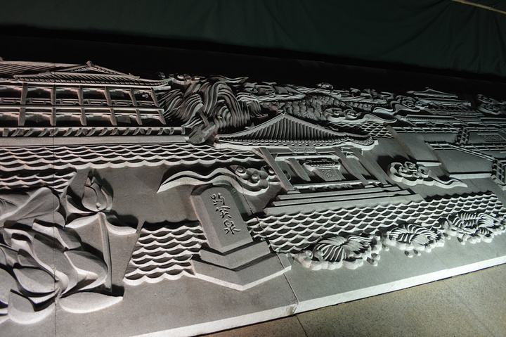 《泉城攬勝》浮雕位于廣場(chǎng)中部、下沉廣場(chǎng)東側(cè),長(zhǎng)30米,寬2.5米,選自珍珠白花崗石雕刻而成。浮雕以多場(chǎng)面組合的構(gòu)成手法,將泉城“三大名勝”、“四大泉系”、“齊煙九點(diǎn)”、“靈巖圣境”、“四門(mén)古塔”、“龍山文化”等景觀(guān)和文脈融為一體,充分體現(xiàn)了“山、泉、湖、城、河”泉城特色,展示了泉城濟(jì)南豐富多彩、古老莊重的文化風(fēng)貌。
