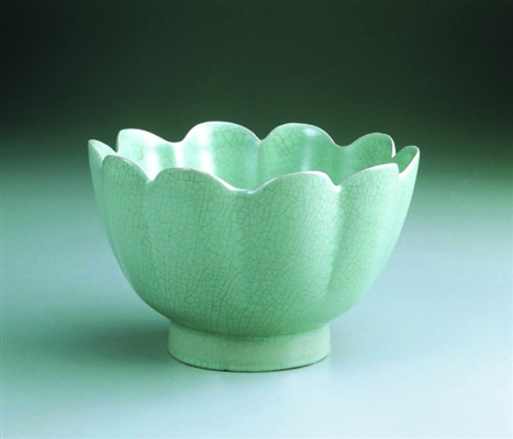 北宋汝窯天青釉葵花洗,本器形擬葵花,應(yīng)為筆洗。
