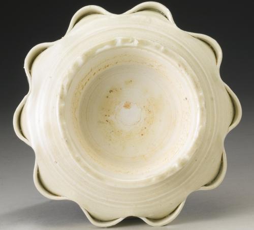 定窯創(chuàng)燒于唐朝后期。從這時(shí)一直到五代的定窯瓷器,還較為粗糙簡單,器型以碗為主,正處于向精瓷的過渡階段。但在五代中后期,定窯白瓷出現(xiàn)了一次根本性的飛躍。所燒瓷器不再施化妝土,胎、釉呈現(xiàn)出精、白薄的特征。有些器物的白度甚至超過了邢窯的細(xì)白瓷器。