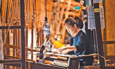 南京云錦研究所的一線織工有200多人,但多數(shù)都是從事流水線操作的普通織工,掌握云錦“核心工藝”的骨干力量少之又少。南京云錦人的織錦秘訣都是依靠口傳心授代代相傳。古代云錦的傳統(tǒng)收徒儀式分為6個環(huán)節(jié),依次是拜祖師、徒弟改口、師傅訓(xùn)誡、徒弟承諾、戒尺加身、師徒互贈禮。按照行規(guī),徒弟先要向師傅贈送傳統(tǒng)的“六禮束脩”——肉干、芹菜、蓮子、紅棗、桂圓、紅豆。師傅的回禮也是6樣,金線、五彩絲線、孔雀羽、意匠稿、蔥、芹菜。