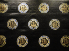 庫緞是在緞地上起本色花?;y有明花和暗花兩種。明花浮于表面。暗花平板不起花。庫錦,又名織金。其花紋全部用金線織出。傳統(tǒng)的織金圖案,大多采用小花紋,以充分顯金為其特色。