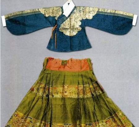 暗綠地織金紗通肩柿蒂形翔鳳短衫妝花紗蟒裙
