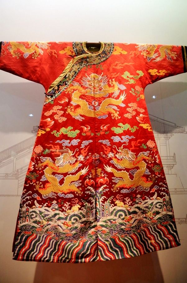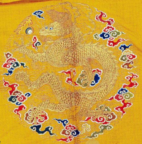 在中國傳統(tǒng)戲劇的舞臺上,凡有帝王將相、王妃公主出場,他們身上光彩奪目的服飾,總會讓人們的眼睛為之一亮。它們有力地烘托了人物,渲染了劇情氣氛。這些雍容華貴的戲劇服飾,是以明清帝王后妃和高官貴婦及千金們的服飾為藍本,經(jīng)過藝術(shù)加工制成的。而這些古代帝王們的服飾,其中許多就是用南京云錦縫制而成的。所以在“南京云錦”上也就打上了深深的“階級烙印”,帝王服飾體現(xiàn)了“王權(quán)神授”的觀念,歷代帝王自命“真龍?zhí)熳印?,受命于天,駕臨人世,統(tǒng)治眾生,于是在服飾上大量使用傳說中的神獸“龍”的形象,非帝王不準(zhǔn)用,以示君臨天下,唯我獨尊。