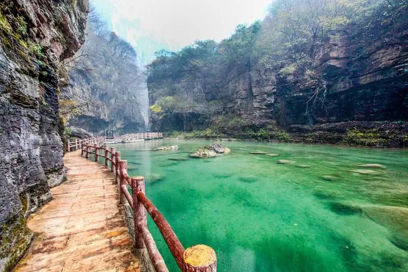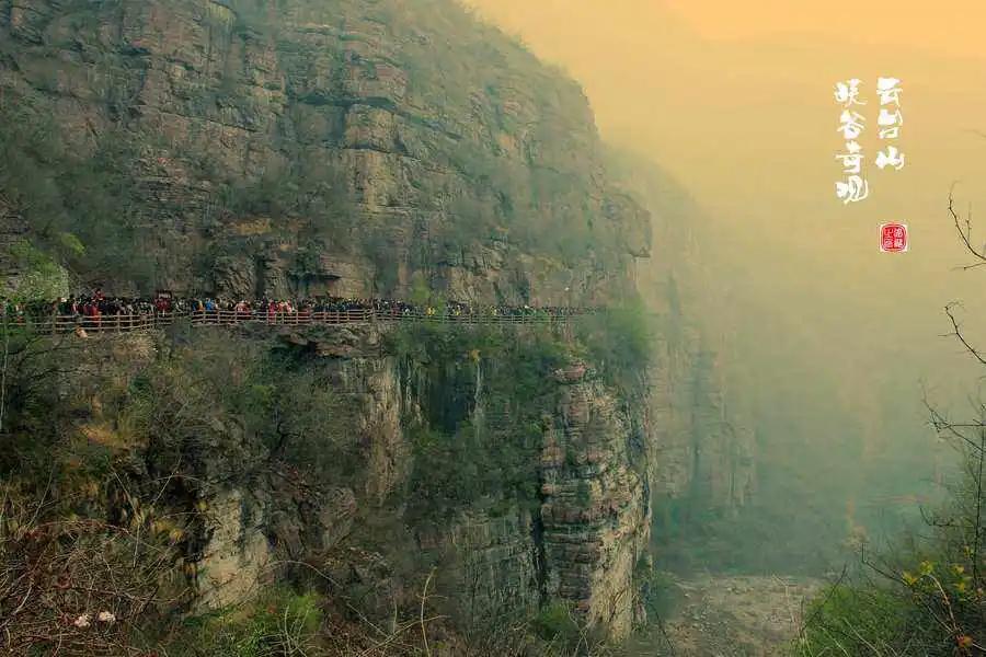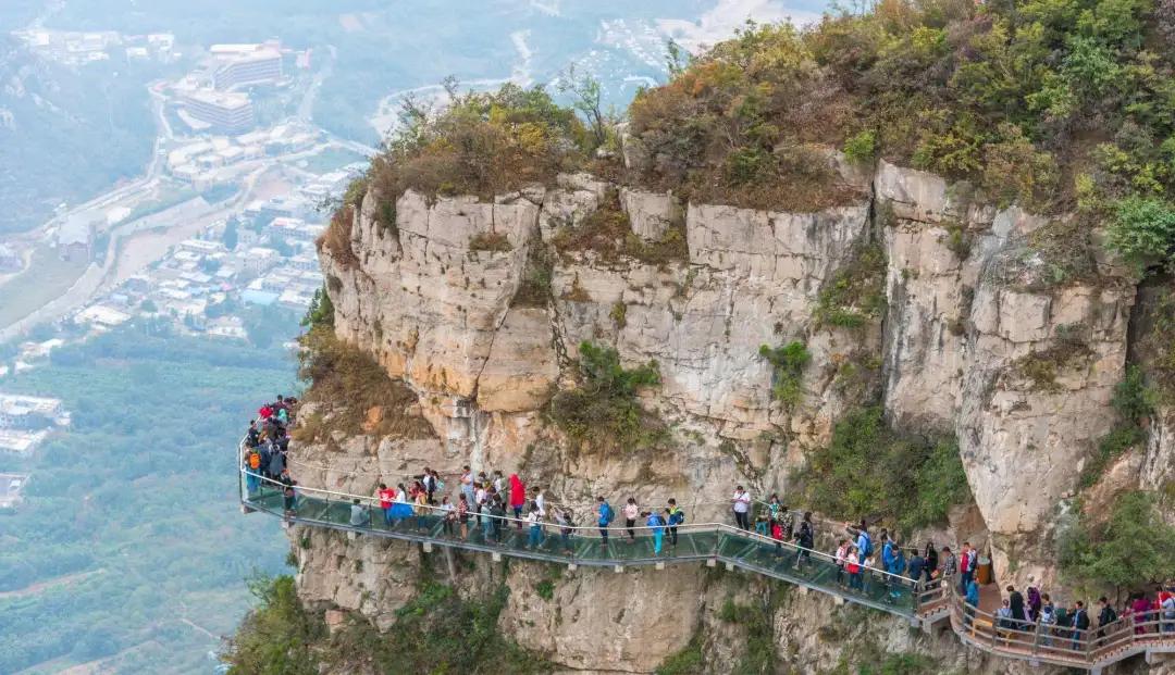 后前往云臺山,自行游覽盆景峽谷——【溫盤峪】(又名紅石峽)。那里集華夏山水與方寸之中;欣賞白龍瀑、黑龍洞、懸石、相吻石、含羞石、天女散化瀑等景觀,觀北方罕見景觀鐘乳石,盡情領(lǐng)略“真山、真水、真空氣”,游覽子房湖, 后游覽云臺山最高峰【茱萸峰】,茱萸峰是歷代文人墨客,僧道修行的圣地,這里植被茂密,古樹參天,有千年名樹紅豆杉,五角楓樹,太行花,森林覆蓋率高達93%,滿山覆蓋的都是原始次生林,有天然氧吧之美譽。踏千階的云梯棧道登上海拔1308米的茱萸峰頂,但見群山連綿,峰涌云動,使人頓生“會當(dāng)凌絕頂,一覽眾山小”的豪邁氣概。俯視腳下,群峰形似海浪涌。山頂氣候多變,倏忽間風(fēng)起云生,白霧從山間咕嘟嘟地涌出,紅日隨即隱去。山峰在云霧中出沒,云騰山浮,如臨仙界。玻璃棧道位于云臺山茱萸峰鳳凰嶺景點,在海拔1080米的半山腰上依崖而建?!静A5馈糠譃閮啥?,其中一段沿崖壁呈U型,另一段懸于千米懸崖之上,總長400余米,寬約1.6米。(玻璃棧道體驗費,為20元/人需自理,如遇景區(qū)政策性關(guān)閉,則取消該景點,不另行通知,不退任何費用)游覽結(jié)束返回聊城。