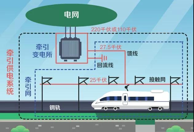 對(duì)于高鐵而言,電廠發(fā)電后通過輸電線路送到牽引變電站(這里是鐵路資產(chǎn),由鐵路相關(guān)部門運(yùn)行),再通過接觸網(wǎng)將電供給鐵路。下面這張圖會(huì)幫您很好地理解。