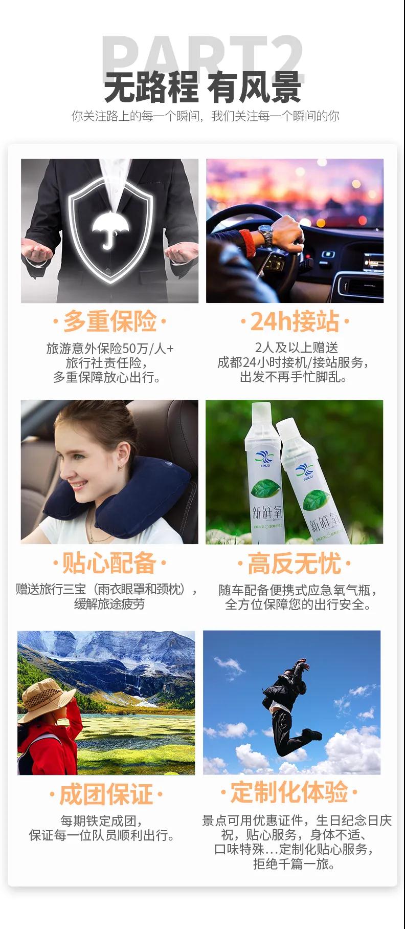 2、由于川西地區(qū)路況較差,山道狹窄,有可能因?yàn)槎萝?chē)而發(fā)生延誤,請(qǐng)大家盡量預(yù)定第二天返程的航班或車(chē)次。