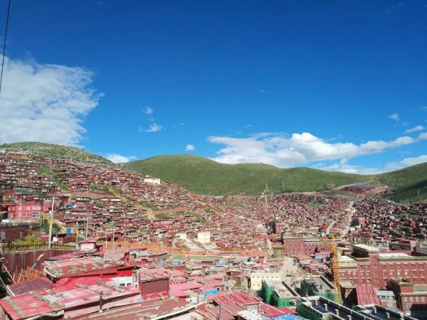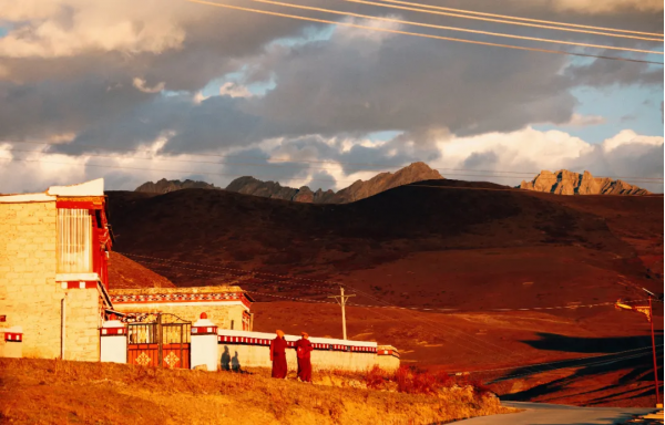 雖說山坡上的紅色藏寨不如色達的密集宏偉,但來到這里還是被驚艷到了。