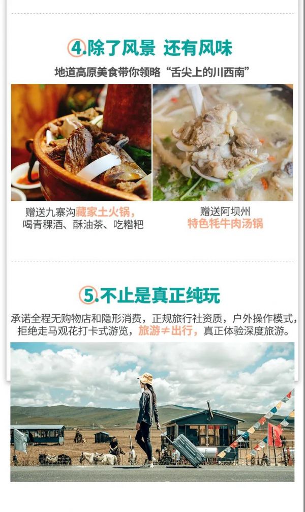 (1)贈(zèng)送九寨溝走進(jìn)藏家活動(dòng),吃藏式土火鍋、青稞酒、酥油茶、糌粑,與熱情藏民高歌共舞,深度體驗(yàn)藏族風(fēng)情;