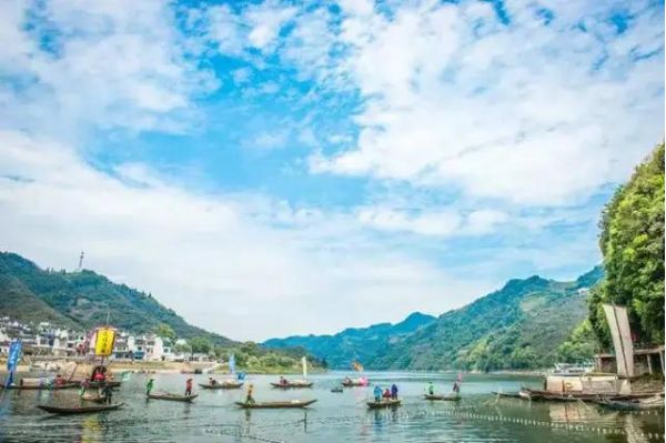 7:00準時集合出發(fā),約8:30到達深渡碼頭,乘坐畫廊游船,這是一條聞名中外的“唐詩之路”,今有“山水畫廊、清涼世界”的美譽。它像一條閃閃發(fā)亮的銀練,穿行于錦峰秀嶺、山鄉(xiāng)古建筑之間。兩岸點綴著粉墻黛瓦的徽派建筑,當(dāng)清晨晨霧縈繞抑或傍晚炊煙裊裊之時,頗有中國水墨山水畫的味道。