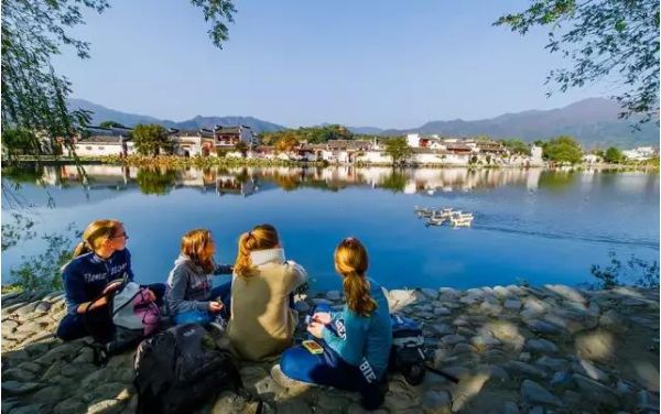 走進村莊,你會發(fā)現(xiàn)有許多人在這里寫生,一塊塊畫板立在身前,畫紙上的取景與配色大都不相同。有的主用青色和黑白,那是春天的清秀宏村;有的主用橙色和黑白,這是當(dāng)季的宏村。一千個人眼里有一千個宏村,這些豐富多彩的配色,能夠讓到訪者親身經(jīng)歷一場視覺的盛宴。