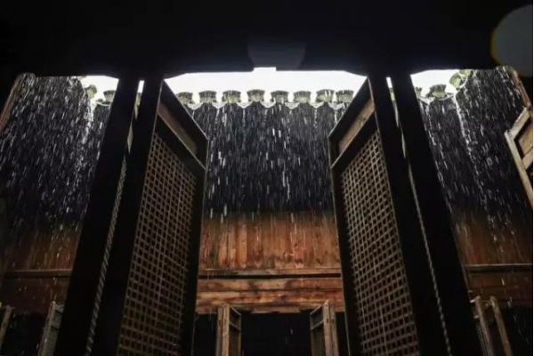 徽州的民居建筑,在高大的馬頭墻內(nèi),天井是古民居的一個特色,上可見天,下可排水,采光通風(fēng),江南多雨時雨水沿水梘流向屋內(nèi)下道(明堂),俗稱四水歸堂,寓意為聚斂財氣。