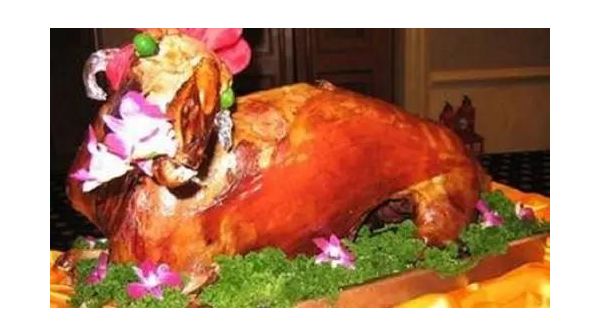 烤全羊,安固里最有名的一道大菜,只有招待貴客的時候才會有這個。先選一只半歲左右的肥羊羔子,抹脖子放血,拉花刀以后放在已經(jīng)升好的炭火上來回熏烤。等到羊熟到身上的油噼里啪啦的往火里掉的時候就把調(diào)好的調(diào)料均勻地刷在羊身上。壩上烤全羊是烤熟一層吃一層,大概要吃上7 8層方能吃干凈,最香的就是烤到最后啃骨頭,那才是最好吃的。