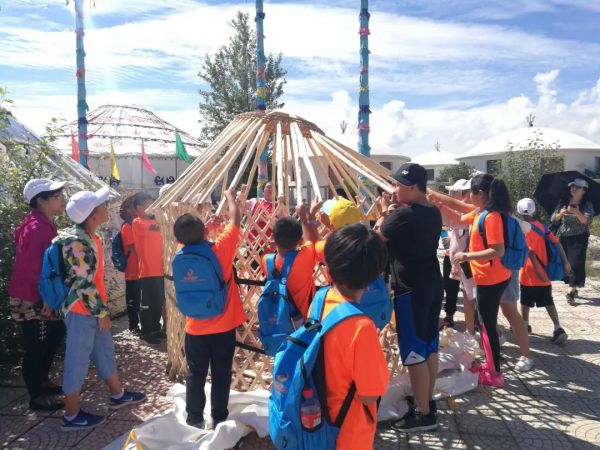 體驗草原風(fēng)情:炫酷電瓶車、勒勒車。為了更好的體驗蒙古族的牧民生活,分組團隊協(xié)作搭建蒙古包,輔導(dǎo)老師作為評委,由當(dāng)?shù)啬撩裼H手教學(xué)。