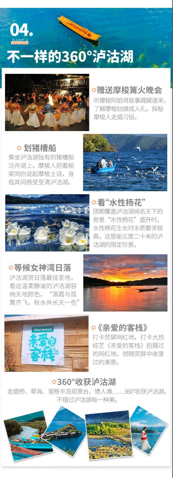乘著豬槽船360°環(huán)游瀘沽湖,然后我們?nèi)サ健队H愛(ài)的客?!返娜【暗?,去走大熱綜藝走過(guò)的路,領(lǐng)略熒屏中收錄過(guò)的美景。