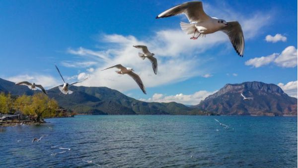 想要賞瀘沽湖日出美景的朋友今天就要起個(gè)早了哦,當(dāng)水天相接的地方閃現(xiàn)出第一縷光,金光便開(kāi)始爭(zhēng)相恐后地從平靜的湖面中躍出來(lái),打破瀘沽湖寧?kù)o的晨,直到這輪旭日完全沖破云層,晨曦播撒在這個(gè)世外桃源的湖面上、山坡上、草地上,柔和的光暈照亮了整個(gè)大地。靜謐生出熱鬧,黑夜誕出光明,瀘沽湖的日出就是如此壯觀。