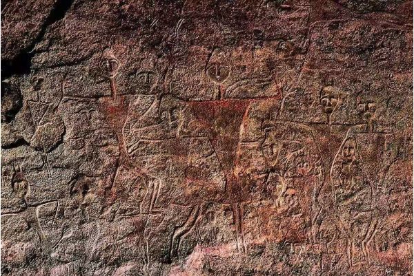 康家石門子巖畫是一幅國(guó)內(nèi)及世界上罕見的生殖崇拜巖畫。位于新疆昌吉州 呼圖壁縣的天山腹地, 兩條山溪匯流處的西北岸的新第三紀(jì)的粉砂巖壁上。這處巖畫經(jīng)有關(guān)專家論證定為距今三千年的塞人遺存。據(jù)認(rèn)為巖刻完成于原始社會(huì)后期父系氏族社會(huì)階段。是研究新疆原始社會(huì)的珍貴資料。