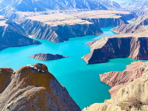 肯斯瓦特水庫(kù)位于瑪納斯河上游,距石河子60多公里。水庫(kù)大壩將瑪納斯河水匯集起來(lái),形成一個(gè)高山湖泊,放眼四望,湖水蜿蜒于群山峻嶺之間,曲折環(huán)繞?見盡頭,河水純凈翠綠,平靜如鏡。登高望?,令人心曠神怡。