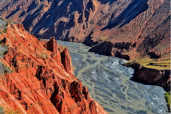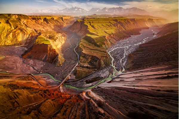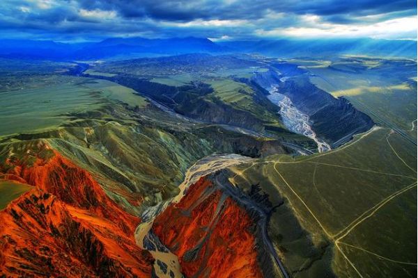 安集海河發(fā)源于天山山脈,通過(guò)長(zhǎng)年沖刷,在通古特附近沖出天山峽谷,在天山北坡下形成了規(guī)模宏大的沖擊扇,河谷沖擊扇規(guī)模宏大,以傘形向北張開,甚稱地質(zhì)奇觀。此處非景點(diǎn),本地人知道也不多,幾乎無(wú)游人,拍攝危險(xiǎn)系數(shù)較大,站在山頂往谷底看,背脊發(fā)涼。