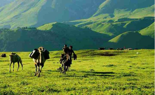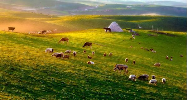 喀拉峻大草原位于新疆伊犁河谷的特克斯縣境內(nèi),是西天山向伊犁河谷的過(guò)渡地帶,這里降水豐富,氣候涼爽,土質(zhì)肥厚,十分適宜牧草的生長(zhǎng),生長(zhǎng)有上百種優(yōu)質(zhì)牧草。