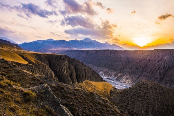 闊克蘇大峽谷發(fā)源于天山山脈中部,由億萬(wàn)年來(lái)沉積的巖層隨地質(zhì)運(yùn)動(dòng)和天山雪融水交相作用而形成,位于新疆伊犁八卦城特克斯縣南部。
