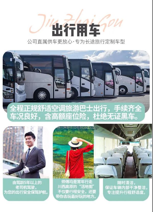 1、關(guān)于車輛交通:目前四川旅游市場(chǎng)8座以下車輛無(wú)法辦理旅游牌照,請(qǐng)游客知悉,以此理由提起的投訴我方拒不受理,望您諒解。