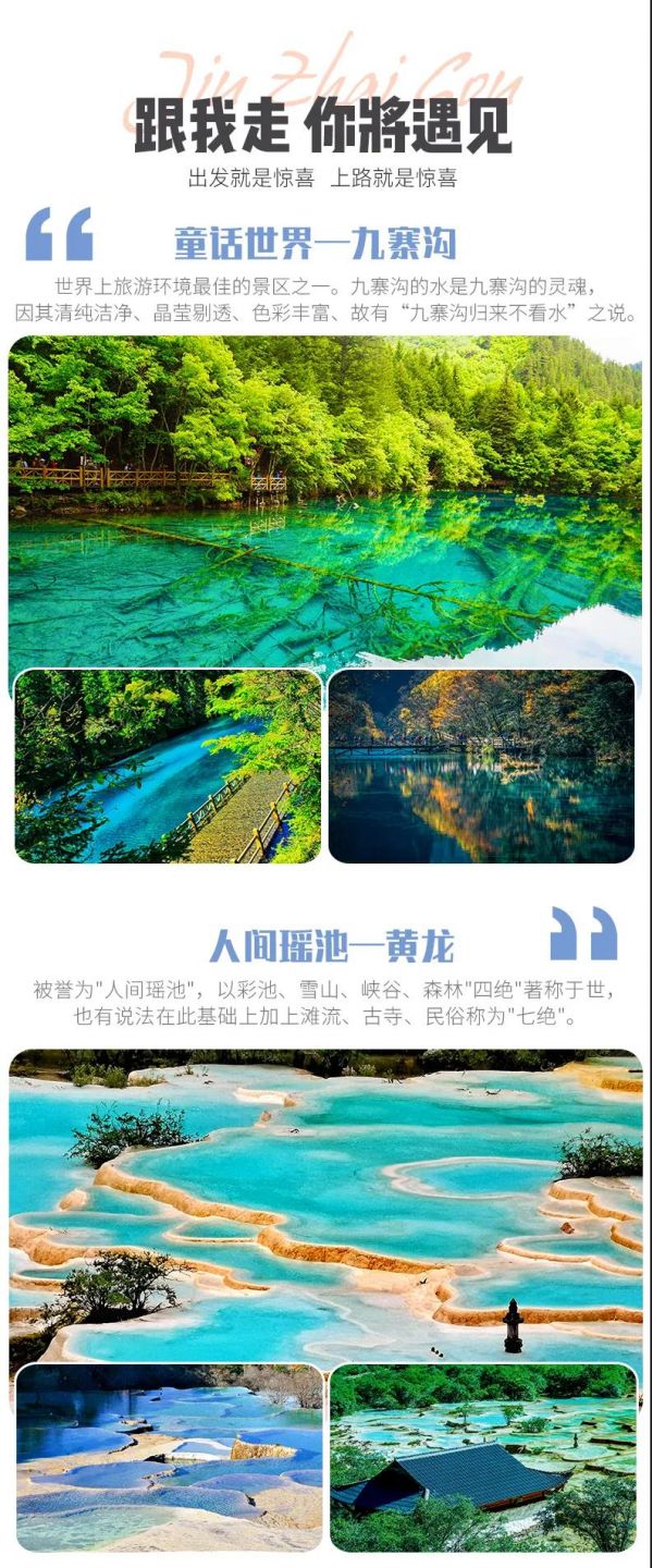 4、九寨溝景區(qū)實(shí)行分區(qū)域開(kāi)放,開(kāi)放區(qū)域?yàn)闇峡诮?jīng)諾日朗瀑布至長(zhǎng)海,扎如溝的扎如寺及日則溝的鏡海;其中,長(zhǎng)海、五彩池、鏡海、諾日朗瀑布、樹(shù)正群海、雙龍海瀑布、扎如寺等景觀原則上為步行游覽區(qū),具體游覽方式請(qǐng)聽(tīng)從隨車講解員安排;