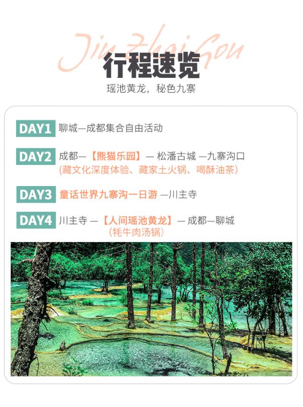 九寨溝 —【黃龍】—(牦牛肉湯鍋)— 成都 — 聊城