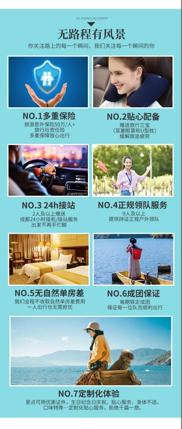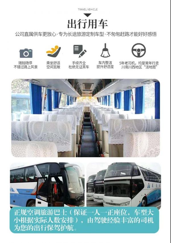 1、關(guān)于車輛交通:目前四川旅游市場8座以下車輛無法辦理旅游牌照,請游客知悉,以此理由提起的投訴我方拒不受理,望您諒解。