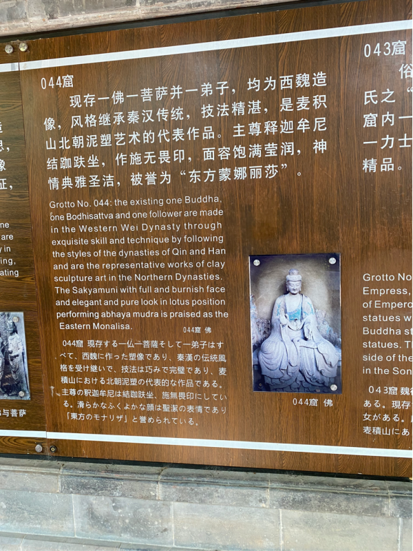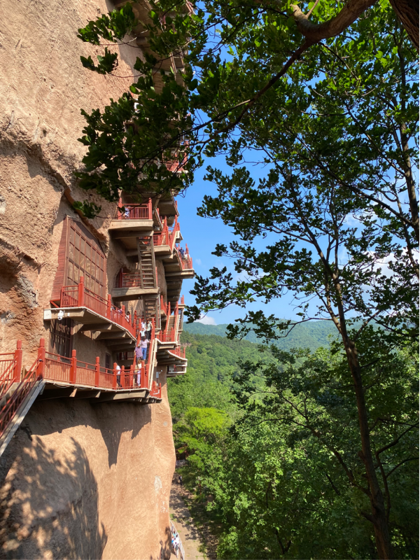 麥積山因山形似麥垛而得名。麥積山石窟始建于384-417年。存194個(gè)窟龕、7000多尊造像、1000平方米壁畫,被譽(yù)為東方雕塑藝術(shù)陳列館。是我個(gè)人非常喜歡的景點(diǎn),集人文、風(fēng)光于一身,兼具知識(shí)性與趣味性。