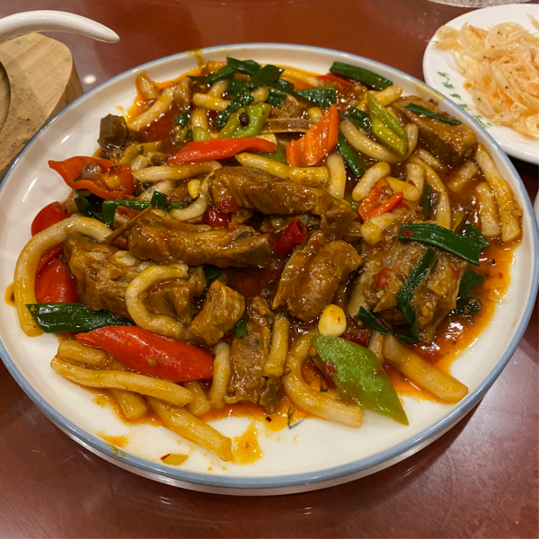 有一個(gè)民居景點(diǎn),商業(yè)步行街為主。不再贅述,因?yàn)樵缇托南到酉聛?lái)的重頭戲——導(dǎo)游帶路的正宗臨夏手抓羊肉。