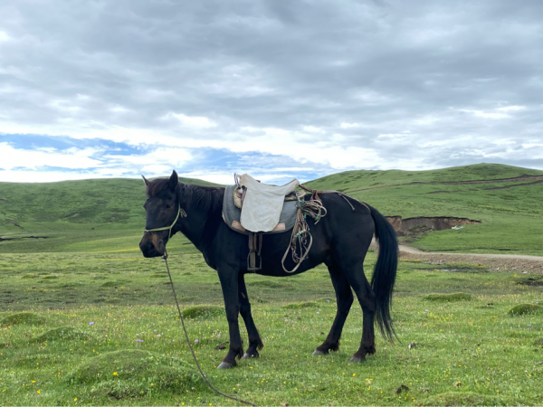 和路邊別的草原差別不大,可以騎馬的。但是團(tuán)友勸說(shuō)有受傷事例,考慮到自己不會(huì)騎馬、沒(méi)有護(hù)具,就沒(méi)有上了。但是看到小牧民不用馬具就揚(yáng)長(zhǎng)而去,還是留下了羨慕的淚水。