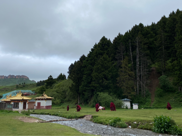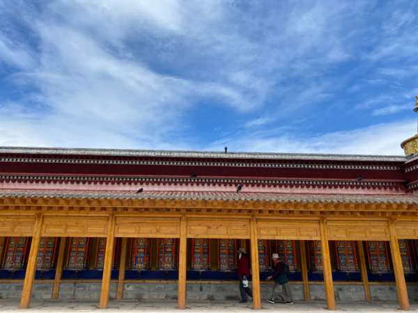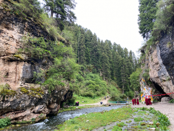 因?yàn)楹筮呌懈蟮睦防闼?,所以不具體介紹了。相較而言,郎木寺可以更好地觀察僧人的生活,小僧人們打羽毛球、放風(fēng)箏、修房子干啥的。拉卜楞寺建筑更宏大,管理更規(guī)范,這方面看不到。這邊還有個(gè)峽谷,但是過(guò)于濕滑,就沒(méi)走了。轉(zhuǎn)經(jīng)筒出口的門有點(diǎn)低,頭頂撞了一個(gè)包,寧波爺爺說(shuō)是撞大運(yùn)了。