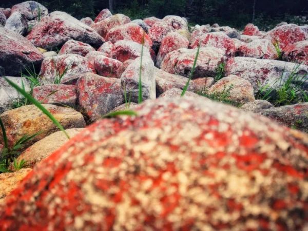 有別于色達那人工雕琢的紅,在海螺溝的那一抹自然紅石灘也是所追逐的。