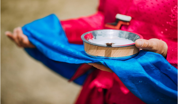 13、呼倫貝爾地區(qū)是屬于邊疆少數(shù)民族地區(qū),民風淳樸,餐飲習慣極具特色。獻哈達是蒙古族牧民迎接客人和日常交往中所使用的禮節(jié),在迎賓儀式上蒙古人會雙手捧哈達、銀碗為客人敬酒,即使不會飲酒,也要接過銀碗粘粘唇,再將酒杯還回,以示對主人的尊重,少數(shù)民族有愛畜、敬茶、敬酒、獻哈達等禮俗,請留意導游的解說。