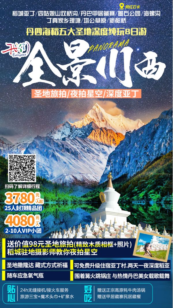 四姑娘山雙橋溝景區(qū)+丹巴甲居藏寨+墨石公園+塔公草原+新都橋+天路十八彎+卡子拉山埡口+理塘+紅草地+尊勝塔林+亞丁風(fēng)景區(qū)+磨西古鎮(zhèn)+海螺溝國家森林公園