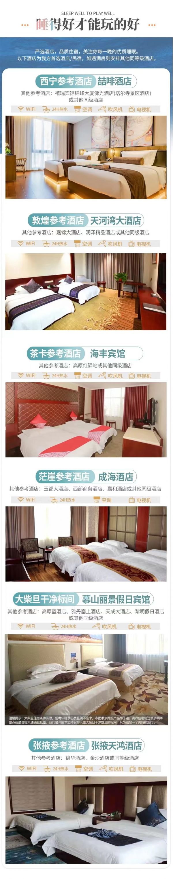 5、該線路為特種線路,當(dāng)?shù)鼐频昙安惋嫍l件無法與城市相比,請游客做好心理準(zhǔn)備;賓館內(nèi)無牙膏牙刷、拖鞋等一次性衛(wèi)生用品,請自備個人衛(wèi)生用品;沿途商店較少,民俗習(xí)慣亦有不同,游客可自備咸菜、小吃、干糧等零食,以備不時之需。
