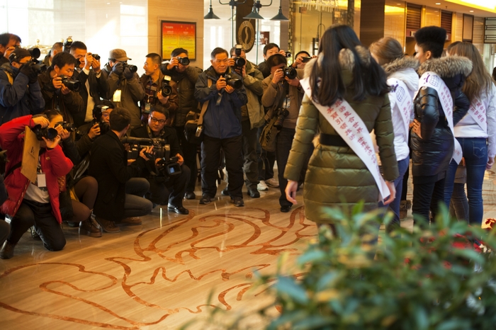 各路記者和攝影師們一起在阿爾卡迪亞國際酒店拍攝世界旅游小姐: