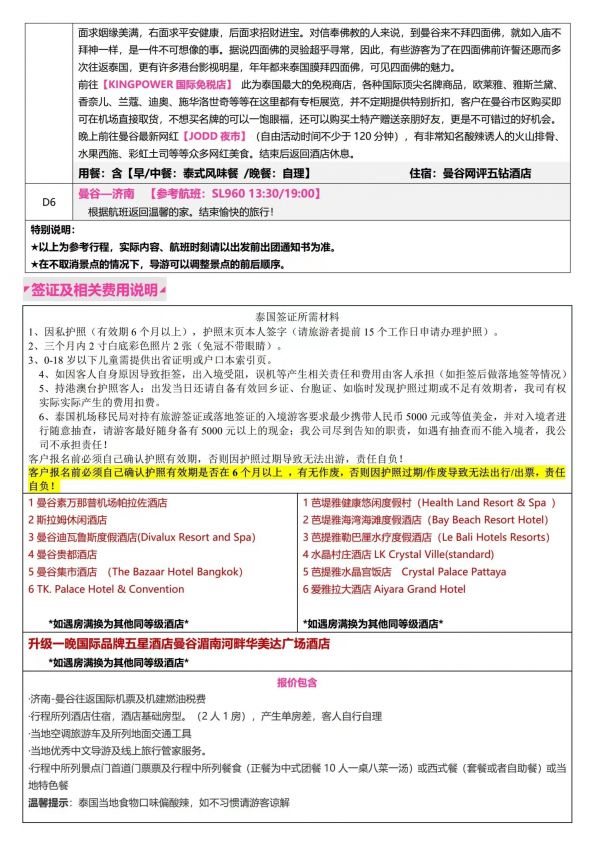 泰國6天5夜游 聊城出發(fā) 純玩 無購物 曼谷 芭提雅 珊瑚島 金沙島 ...... 發(fā)團(tuán)時間 20230609 20230612 價格 2980 報名電話 0635 8681234