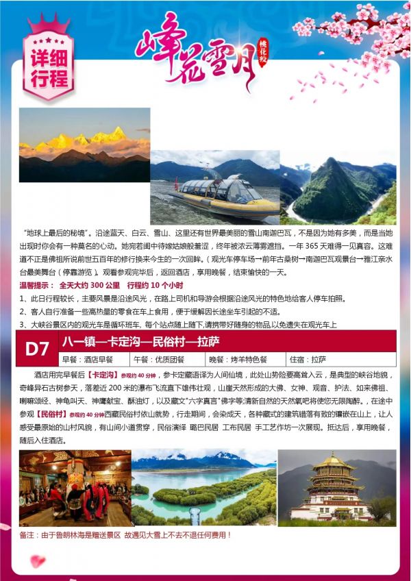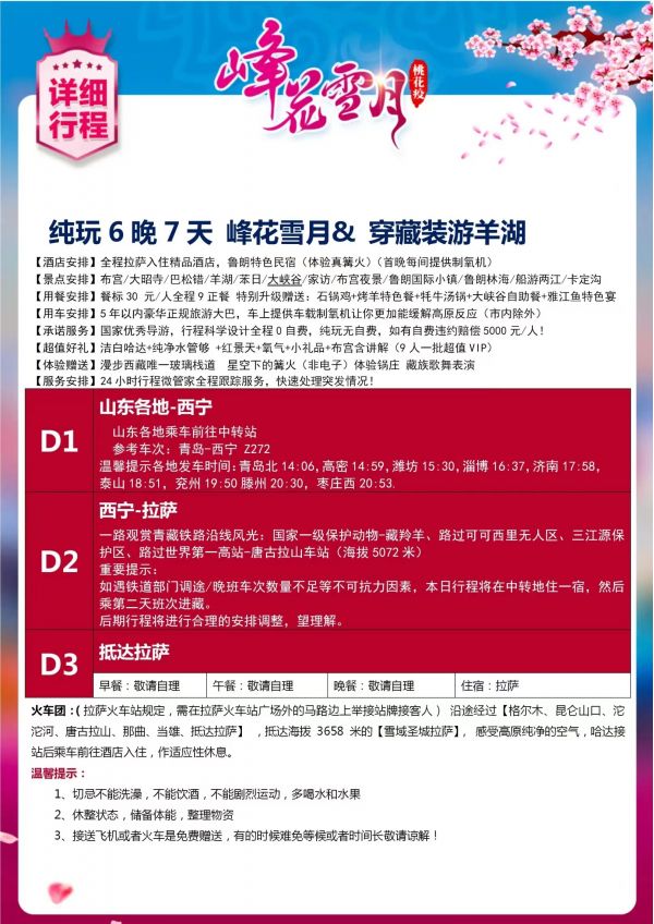 西藏臥去飛回10游 聊城發(fā)團 純玩 無購物 布宮 大昭寺 羊湖 巴松措 尼洋閣 魯朗林海 國際小鎮(zhèn) 玻璃棧道 船游兩江 大峽谷景區(qū) ...... 發(fā)團日期 20230601-20230630 價格 5580 報名電話 0635 8681234