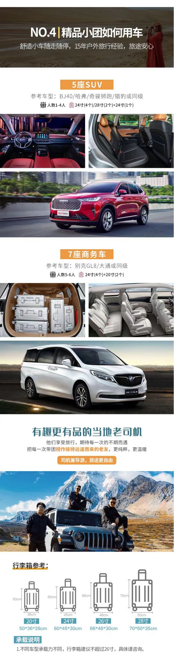 4、如途中遇不可抗因素(如修路、塌方、車輛事故阻礙等)或時間天氣變化我方有權(quán)根據(jù)情況調(diào)整行程線路走向,此舉均是根據(jù)帶隊經(jīng)驗為大家更順利的游玩而做出的改變,希望大家理解和支持,但如造成額外費用由客人自理,望您諒解;若對行程造成影響的,我方將全力協(xié)助游客進(jìn)行解決,但不承擔(dān)由此造成的損失,若因此而增加的費用,敬請游客自理。