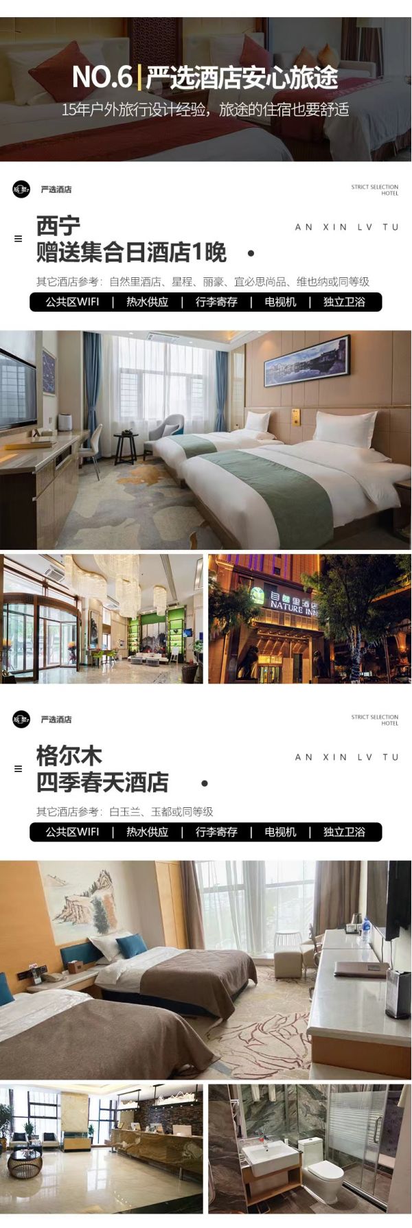 5、該線路為特種線路,當(dāng)?shù)鼐频昙安惋嫍l件無法與城市相比,請游客做好心理準(zhǔn)備;賓館內(nèi)無牙膏牙刷、拖鞋等一次性衛(wèi)生用品,請自備個人衛(wèi)生用品;沿途商店較少,民俗習(xí)慣亦有不同,游客可自備咸菜、小吃、干糧等零食,以備不時之需。