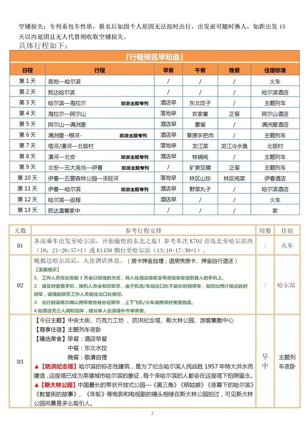 山東向北極光號主題空調專列13日游 聊城發(fā)團 純玩 無購物 哈爾濱 海拉爾 阿爾山 滿洲里 呼倫貝爾 漠河 北極村 五大連池 伊春 ...... 發(fā)團時間 20230614 20230620 20230706 20230815 價格 3380 3680 報名電話 0635 8681234