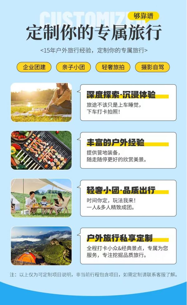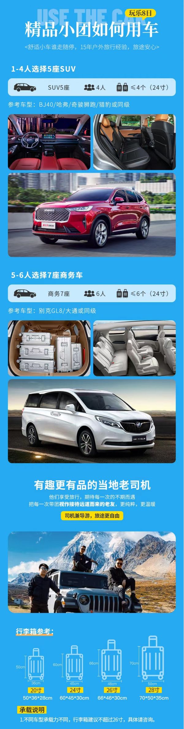 (7)沿途可能出現(xiàn)堵車、修路等不可抗因素導致用餐地點時間不穩(wěn)定,建議大家提前備好充饑零食。