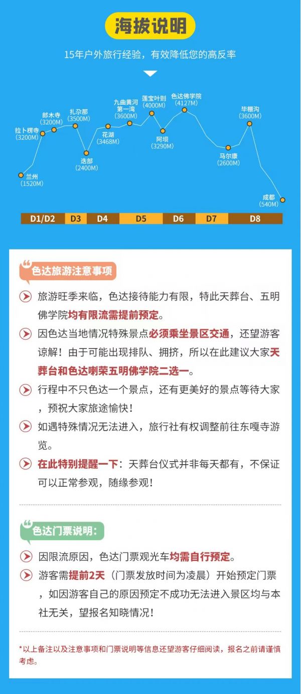 (8)旅游旺季來臨,色達接待能力有限,特此天葬臺、五明佛學院均有限流需提前預定。