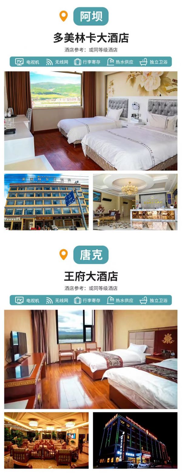 ?阿壩:多美林卡、阿壩縣聚德酒店、古格大酒店、或其他同級(jí)酒店