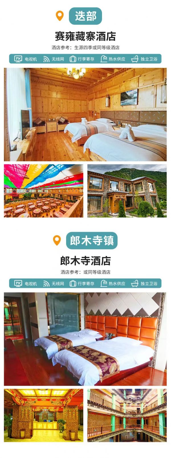 ?迭部:賽雍藏寨酒店、生源四季、迭山假日酒店或其他同級(jí)酒店