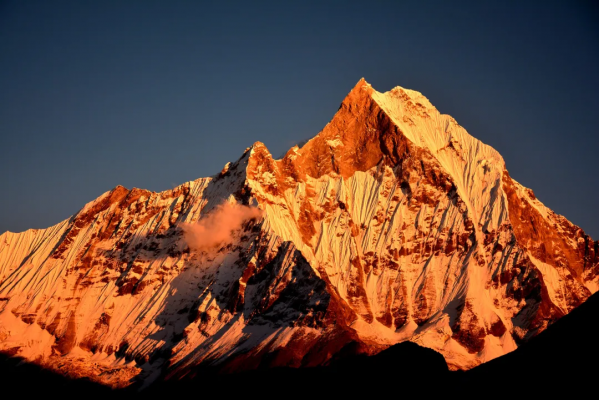 從Nayatahanti到Ghorepani這段路程基本是以上坡路和臺階為主,建議大家使用登山杖協(xié)助登山。沿途我們會看見大片大片的田野、坐落在山林間星星點點的尼泊爾村莊和凜冽峻峭的雪山魚尾峰。魚尾峰海拔6993米,是尼泊爾人心目中的神山,也是一座至今仍無人成功登頂的處子峰,獨含一份未經染指的自然之美。