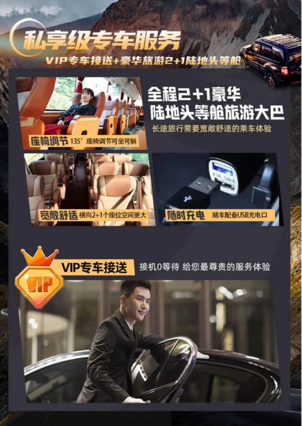 6.車輛:專車免費(fèi)接送機(jī),全程VIP專屬 2+1 航空座椅;;